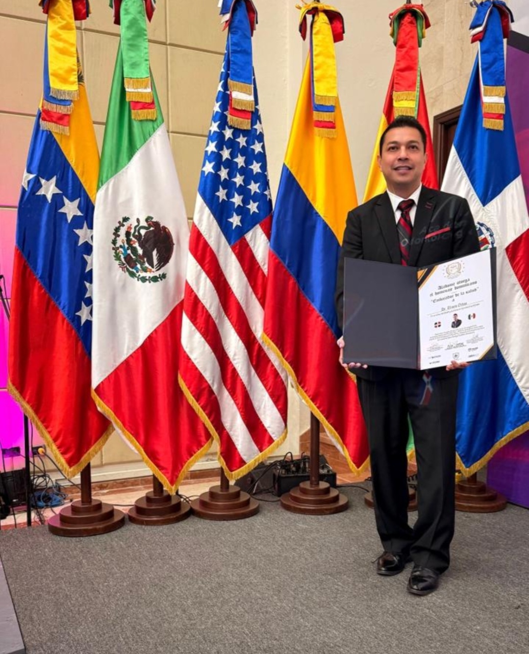 Santo Domingo.- El doctor Ulises Ochoa Valdivía recibió un reconocimiento denominado “homenaje dominicano” como embajador de la salud otorgado por la Academia Latinoamericana de Odontólogos y Médicos Internacional (Aladome), encabezada por la doctora Rosa Daysi Agramonte, celebrará la 5ta. Jornada Internacional, Aladome-FDILA-RD, el foro de la salud y la educación mundial en Santo Domingo.